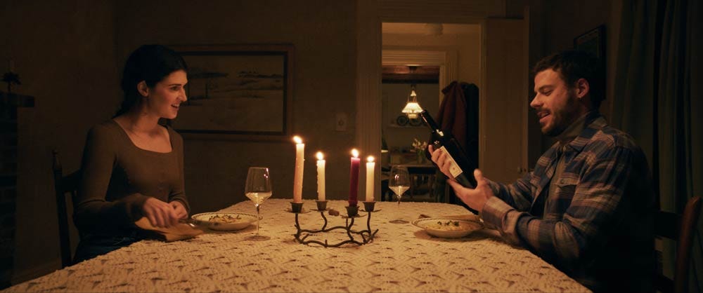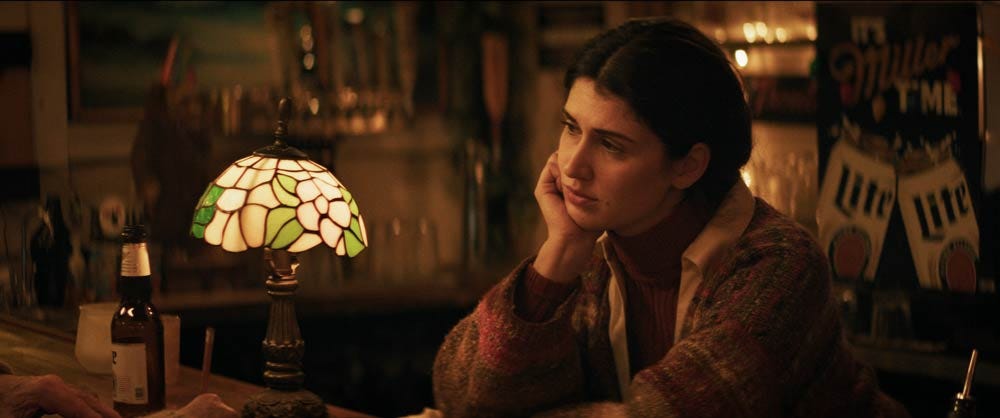 Director Jaclyn Bethany brings grounded, understated performances out her cast and, working with Director of Photography Sam Tetro, frames each scene with a slightly different tone and look. Establishing shot of rural Maine are composed like still lifes and lingered over. (Many shots, for that matter, are given time to breathe and settle, providing a sense of space and pace, avoiding the hermetic, even claustrophic, feel that a less deliberately composed film of this sort, with only a handful of characters and few settings, might suffer.) The bar’s intimate confines are low-lit, with a close, nocturnal feel; Ilse’s makeshift studio, on the other hand, is a more expansive space, and is framed and lit that way. When Lucy and Tom are at home, the framing and lighting find a middle ground — cozy, but not as intimate as one might expect from a couple. The visuals alone tell us that Lucy and Tom, as affectionate as they are, are coasting; they share some momentary excitement over the idea of buying the bar themselves, and making it even more of a “family business,” as Ilse calls it, but it’s not at all clear that the two share much real passion or would make for fulfilling spouses and co-parents.